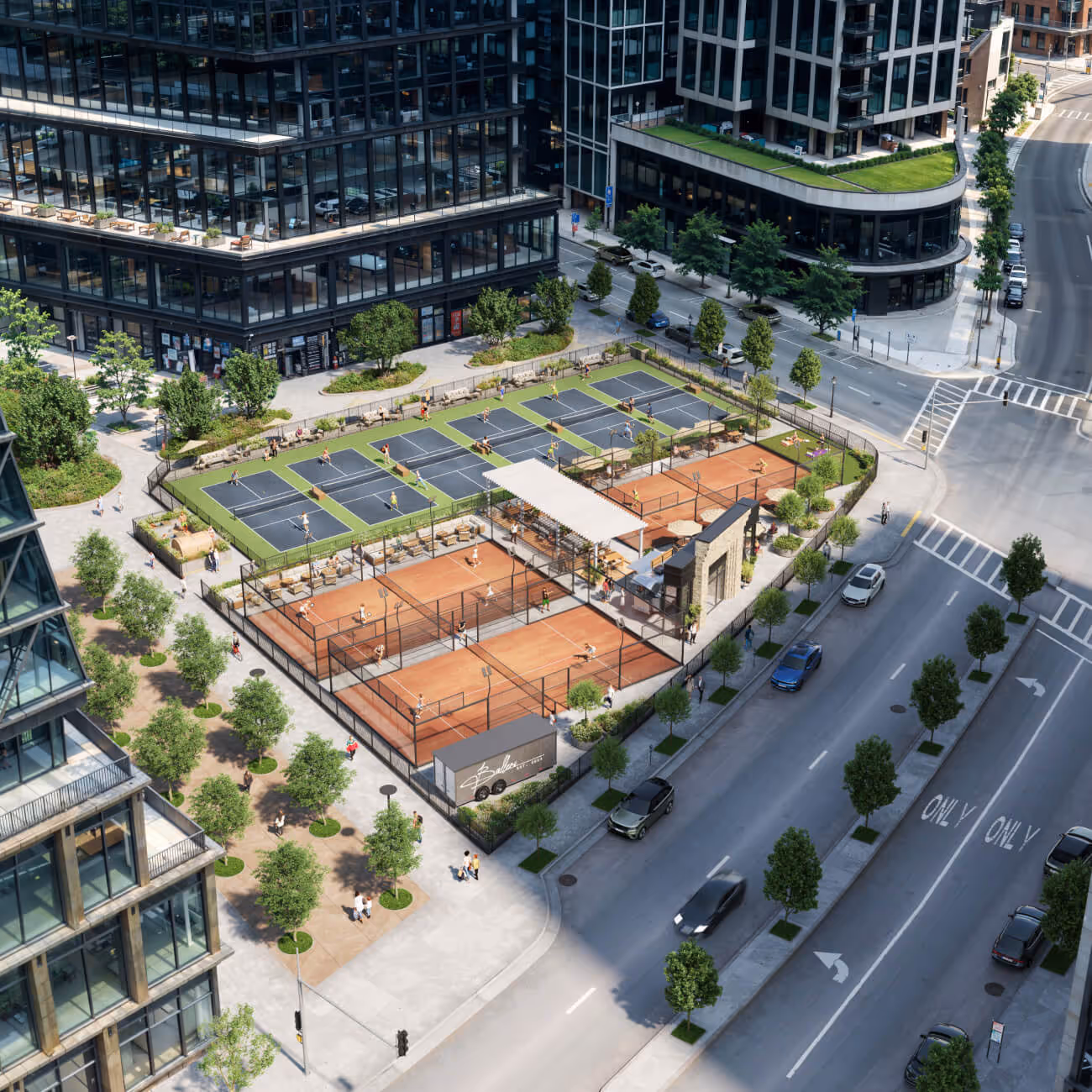 We’re sporting outdoor custom padel courts, panoramic glass, luxe seating, and nothing between your game and great time.